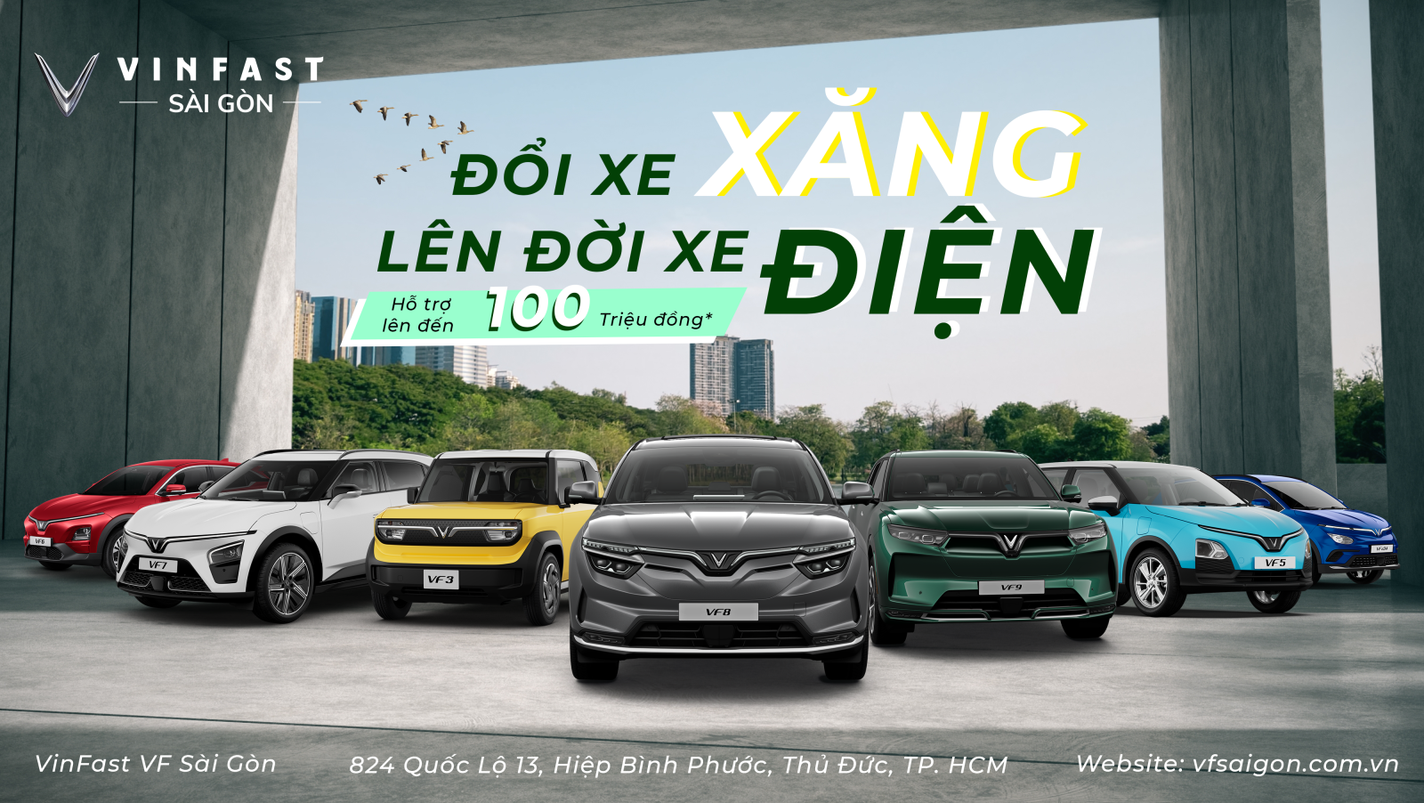 MÃNH LIỆT TINH THẦN VIỆT NAM – VÌ TƯƠNG LAI XANH LẦN 3: VINFAST CÔNG BỐ CHƯƠNG TRÌNH “THU XĂNG - ĐỔI ĐIỆN” ƯU ĐÃI LÊN ĐẾN 100 TRIỆU ĐỒNG/XE